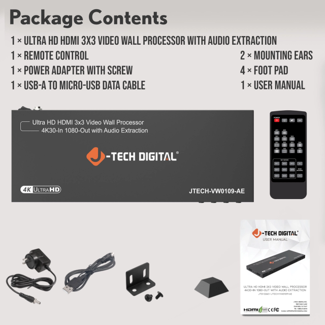 J-Tech Digital 3x3 Video Wall Processor (4K30 In 1080P Out) with Audio Extraction